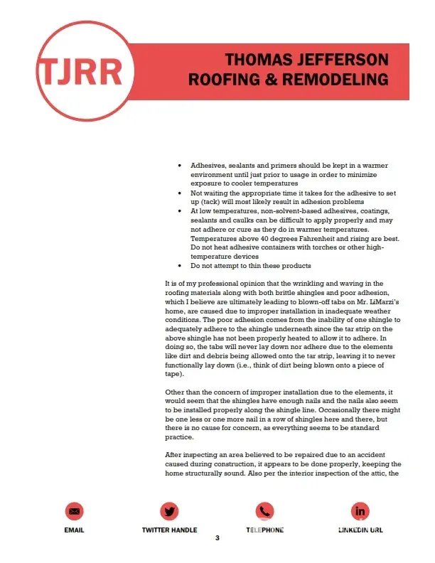 I am including a video and several attachments whose file names should sufficiently identify their purpose. Please look at all 54 pages of the pdf showing various angles of the roof. Note how rough/bad the roof looks due primarily to the temperatures at which it was installed.