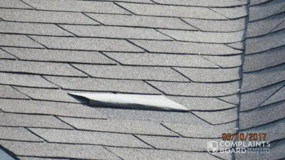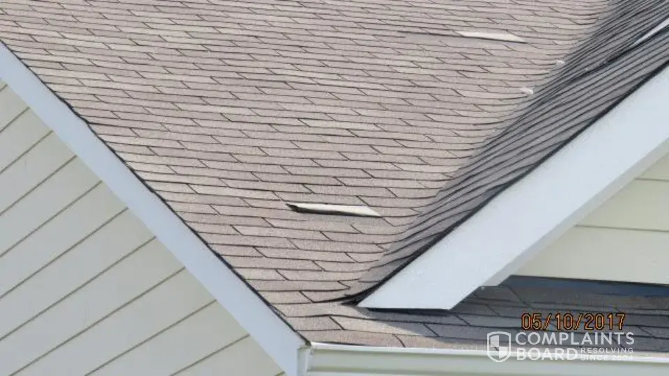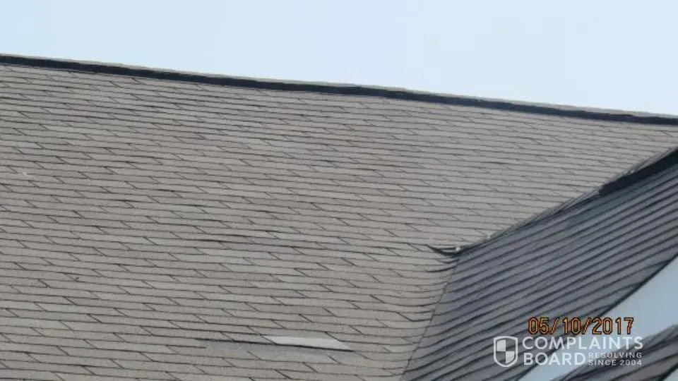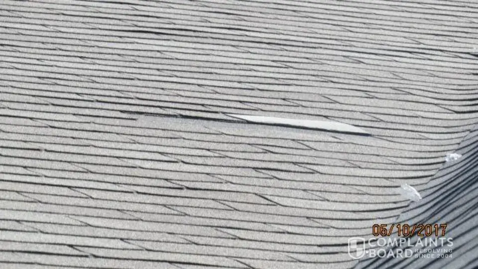 So we are all on the same page, the subject is the roof system or rather roof shingles on the subject home. Roof shingles and/or shingle-tabs that continue to not seal, rip off, and fly away leaving the underlayment exposed to the elements. At this point, 3 months and 2 weeks since closing, some of the tabs have lifted up and down so many times, they are actually creased at the top end - meaning ready to rip off in another wind - and they are devoid of any adhesive material underneath. They will never seal. They just flop up and down. And yet, when the roofer responds, he only repairs the missing tabs, not the creased shingles or those that are dry underneath.