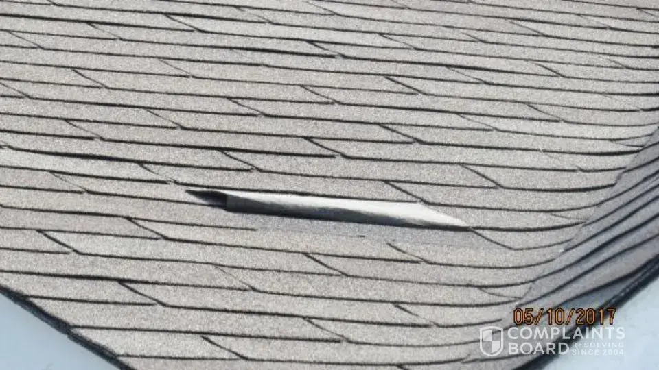 Furthermore, I specifically asked the owner of the roofing company to go out himself to look at the creases, the nail pop (S), the foot traffic, missing tar, and the general condition/rough appearance of the roof. He did not. Sent an employee instead. That employee only replaced the 2 shingles affected. Nothing was said about the creases, etc.