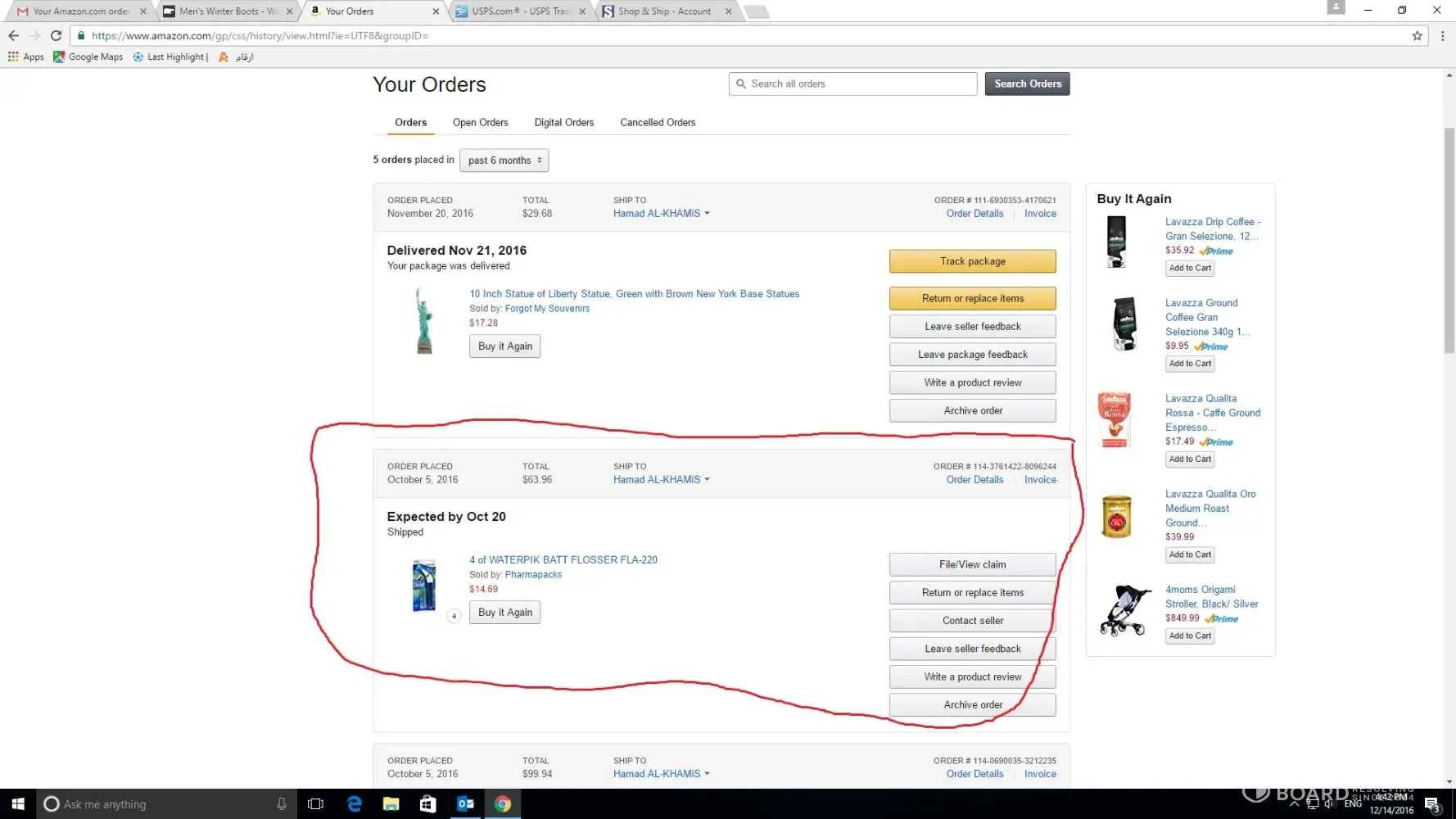 I ordered online coffee which was delivered by fedex [protected] to my shop and ship address.