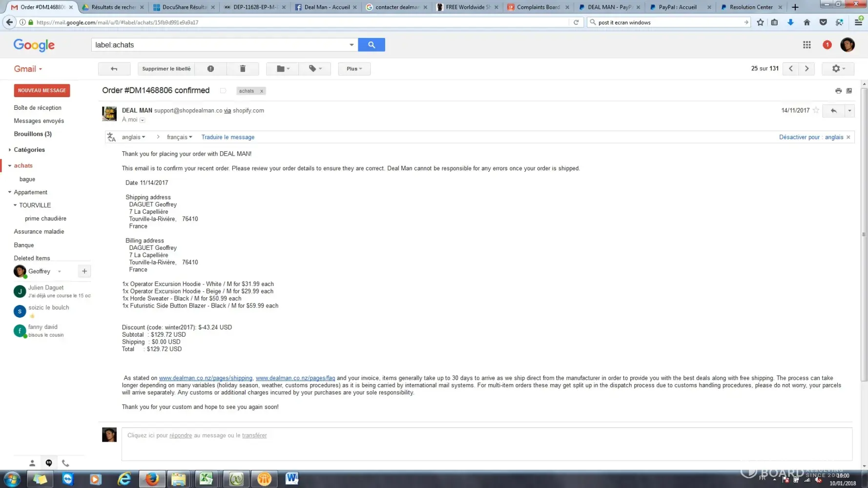 Can I have visibility on my orders : When will I receive it? When will you send the last item? I am really dispointed about your efficacity