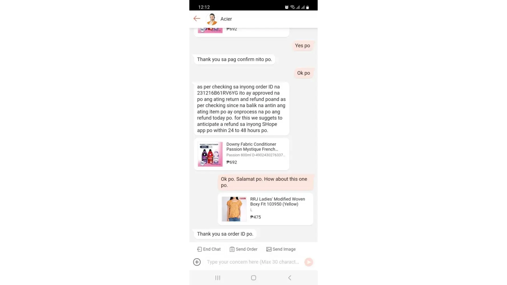 Complaint to shopee, shopee ask seller cancel order.