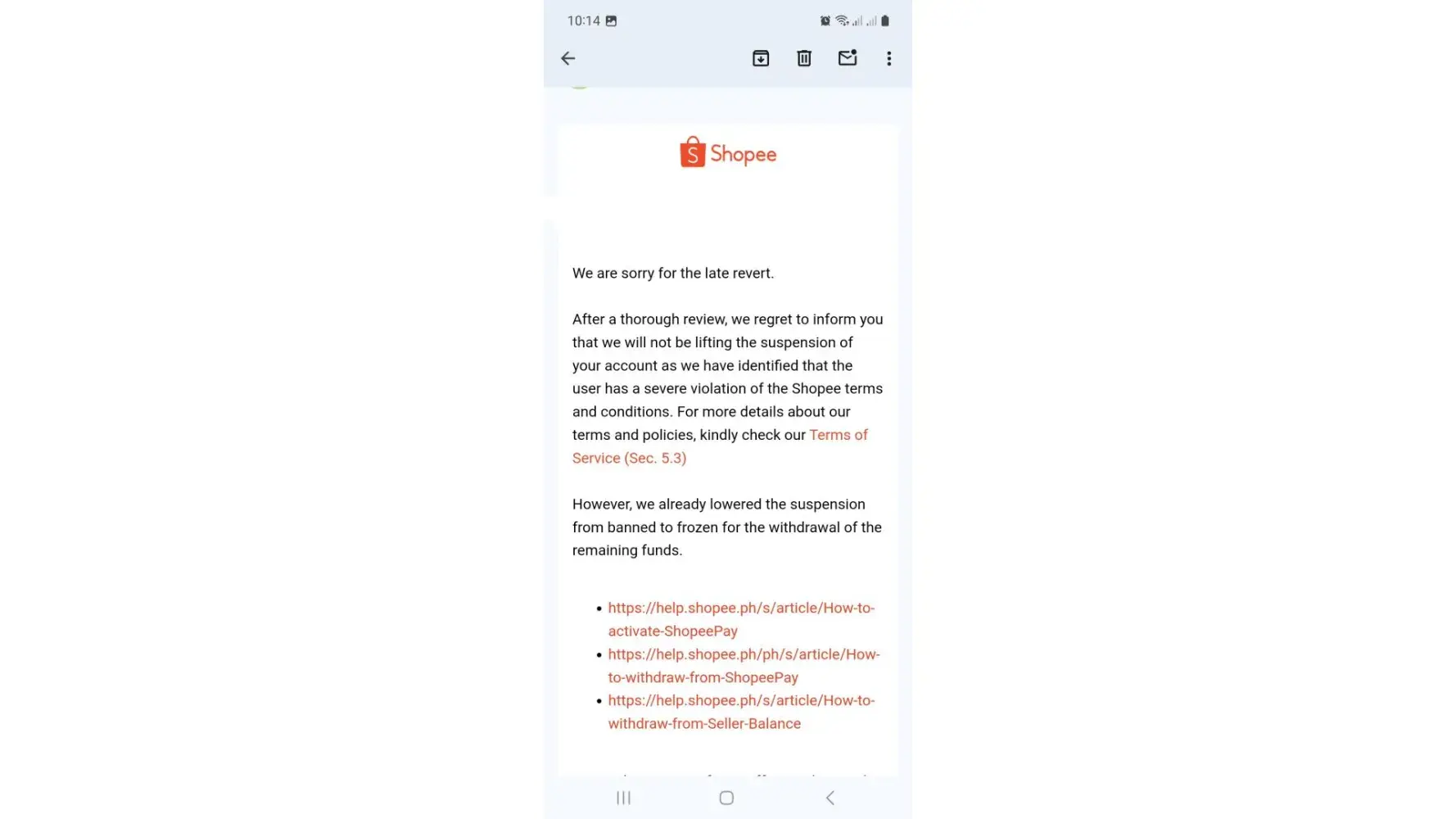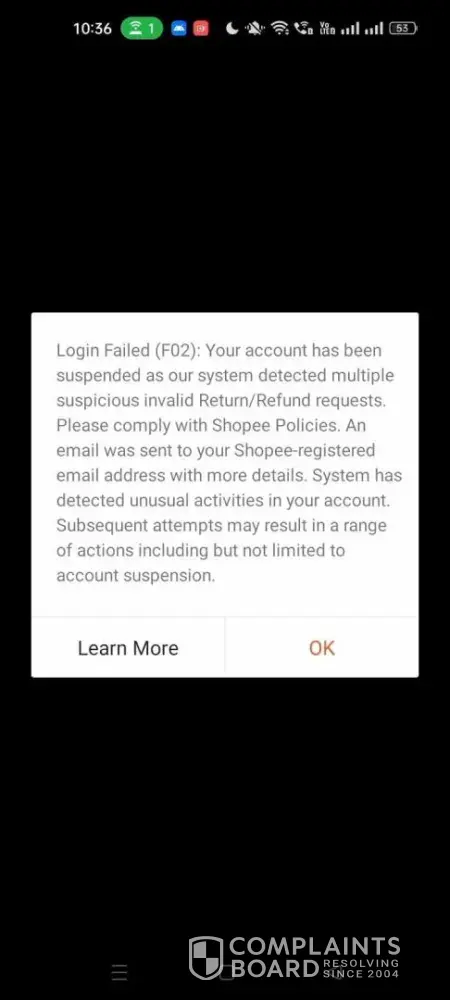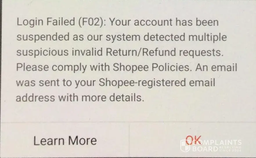 Suspended shopee account due to "multiple suspicious invalid returns/refunds"