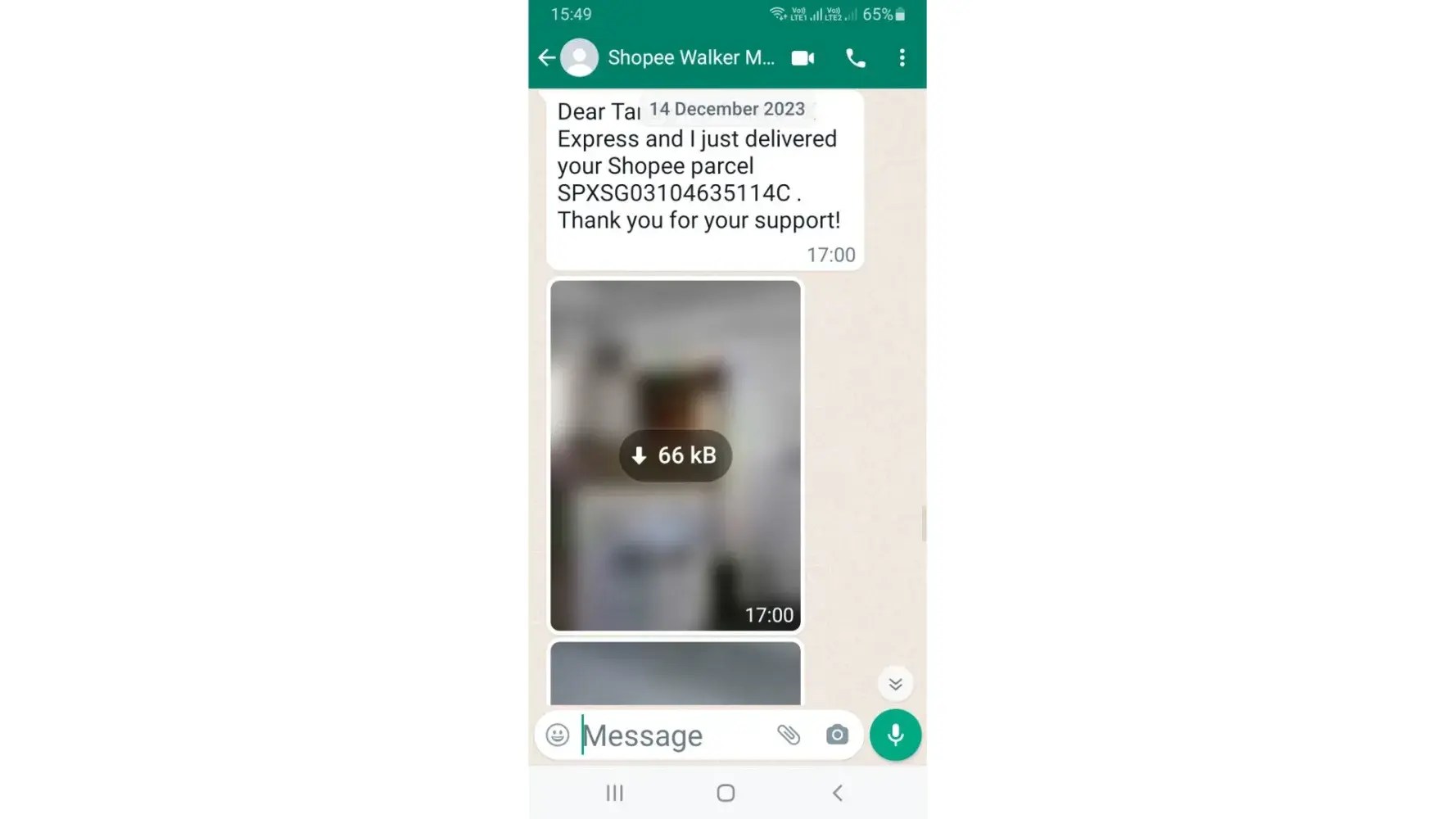 I regret to inform that one of your delivery personnel has seemingly obtained my personal data from the job shopee had granted to deliver my parcel and now the said person is contacting me and asking me to be accountable for my actions. She texted me on the 28/12/23.