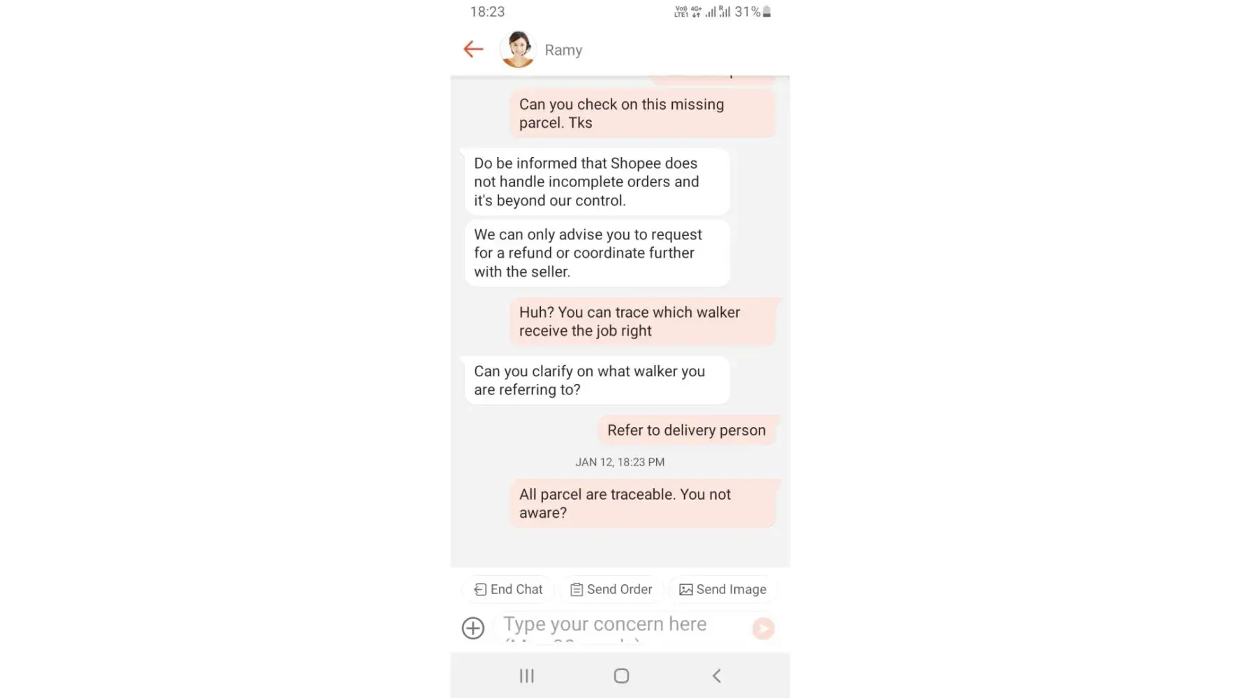 All walker will do this step to notifies buyer and obviously this walker is a cheat. Although the purchase it is not much but shopee integrity should not be compromise by such. Hope to hear from your side soon. Tks you
