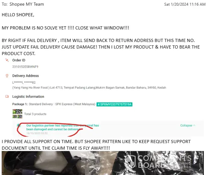 I as seller, sell my product as per customer order & shopee system just pop up parcel damage not to delivery to customer & parcel also no return back to seller.