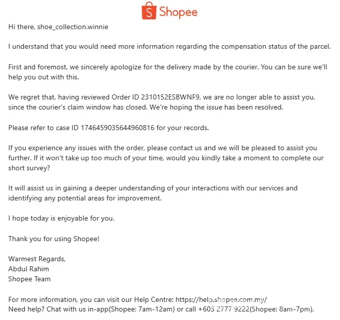 Dear Shopee Support Team,