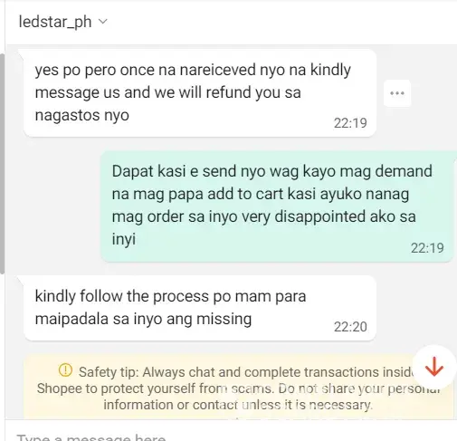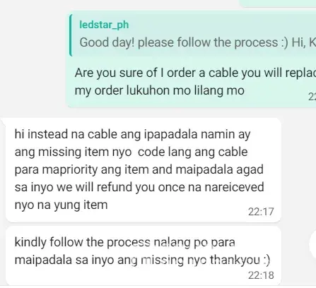 I ordered item ledstar_ph store but one item was missing in my order. SPX Express