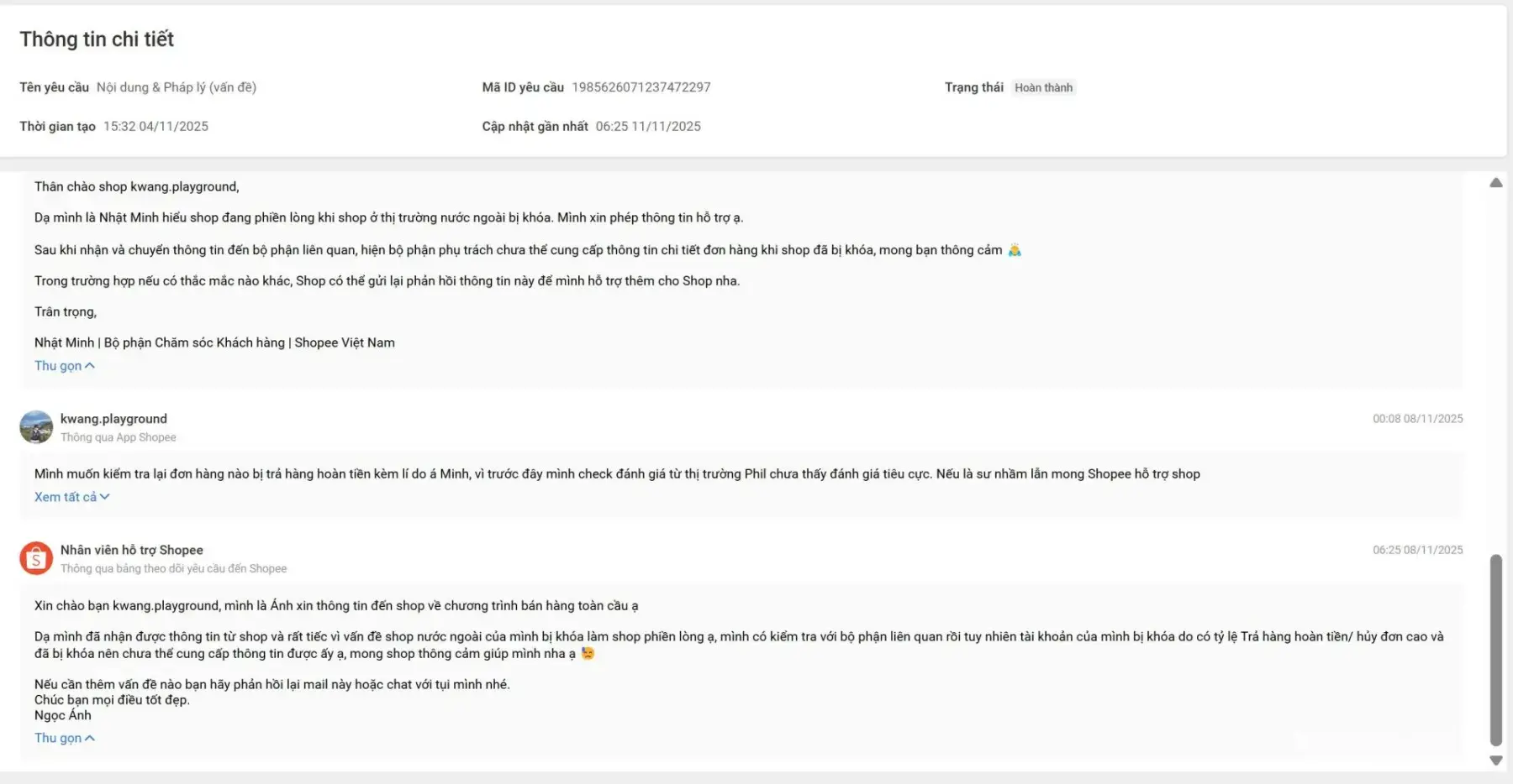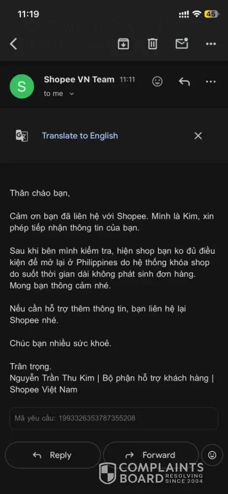 I am writing to formally raise a complaint regarding the inconsistent and unsupported handling of my Shopee Philippines shop suspension by Shopee Vietnam, where I am participating as a cross-border seller in the Global Selling Program. On 4 November, Shopee Vietnam initially informed me that my shop in the Philippines was suspended due to a “high...