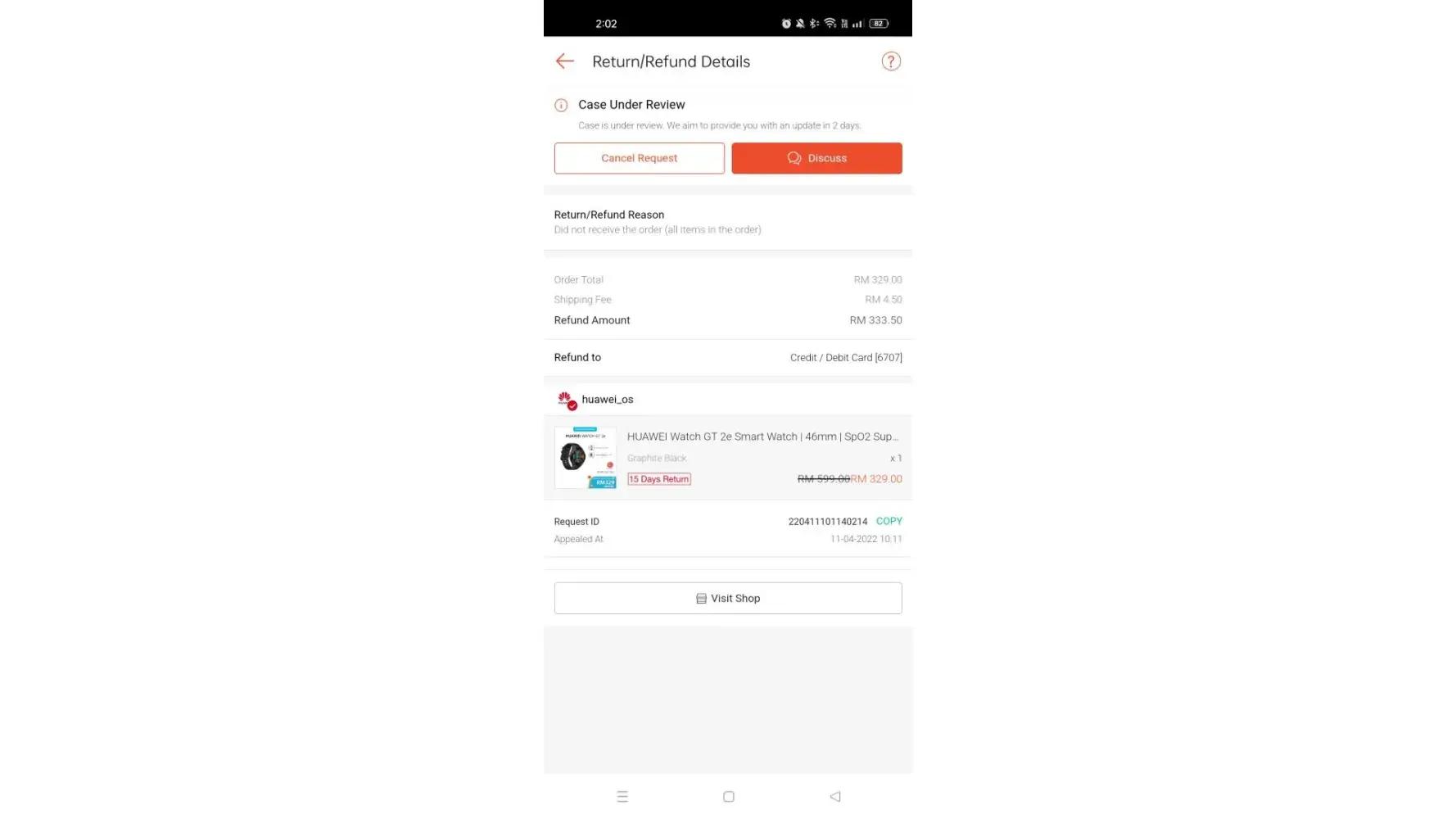 Later, the refund is back to the customer, but I never received any return parcel as your team stated I will received in 3 to 5 days due to high volume of parcels. I wait until the 5 days but the parcel statue has no any changes. So, I ask for assistance again on 24/4/2022. Then what the response I get is "kindly wait for 3 to 5 working days" with no any explanation.