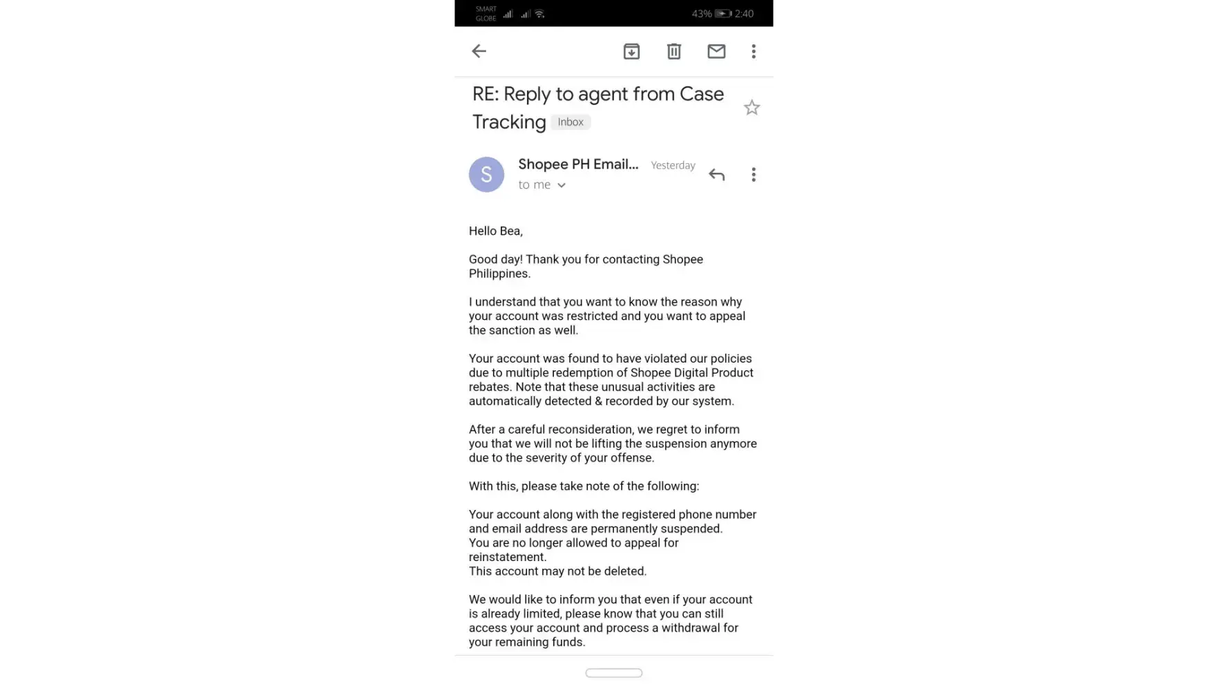 But I kept getting back the same Copy&Paste emails from you guys. You guys say I can reactivate and remain my Personal Shopee Account, but seller accout need to be deleted. And I say I'M FINE WITH IT! Just give me back my account and let me do my ShopeePayLater payments, I managed to clear my monthly installments earlier before due date. I don't want to be blacklisted for late payments, because you guys simply don't let me to get back my personal account!