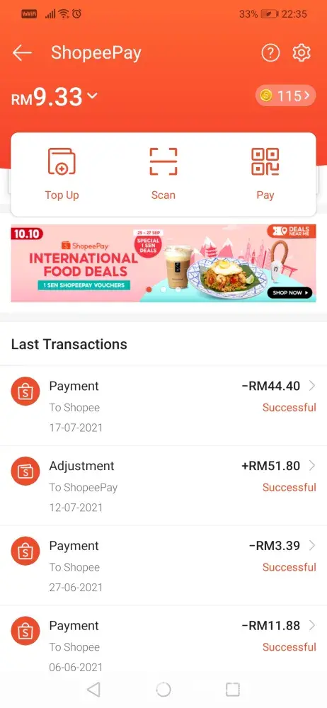 5. Please to attach herewith the screenshot of my mobile phone for Shopee Pay today, 27.9.2021.