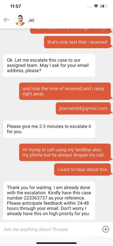 Shopee Case number : 218905563; customer service; account wrongfully suspended