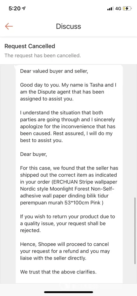 Still Shopee platform denied my refund when the item was already returned to the seller plus the