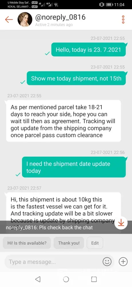 Purchased a product from a seller in Indonesia. The seller replied couldn't send the product. So I request to cancel. But seller refused to accept my cancellation and asked me to wait until the due date and it will automatically cancel. Complaint this to Shoppee but Shoppee told me can't do anything and not entertaining my request. Even I tried to tell this thru Chat but the conversation being cut off without a clear solution for me. Shoppee likes to use this Chat so that they can turn away from their customers as they like.