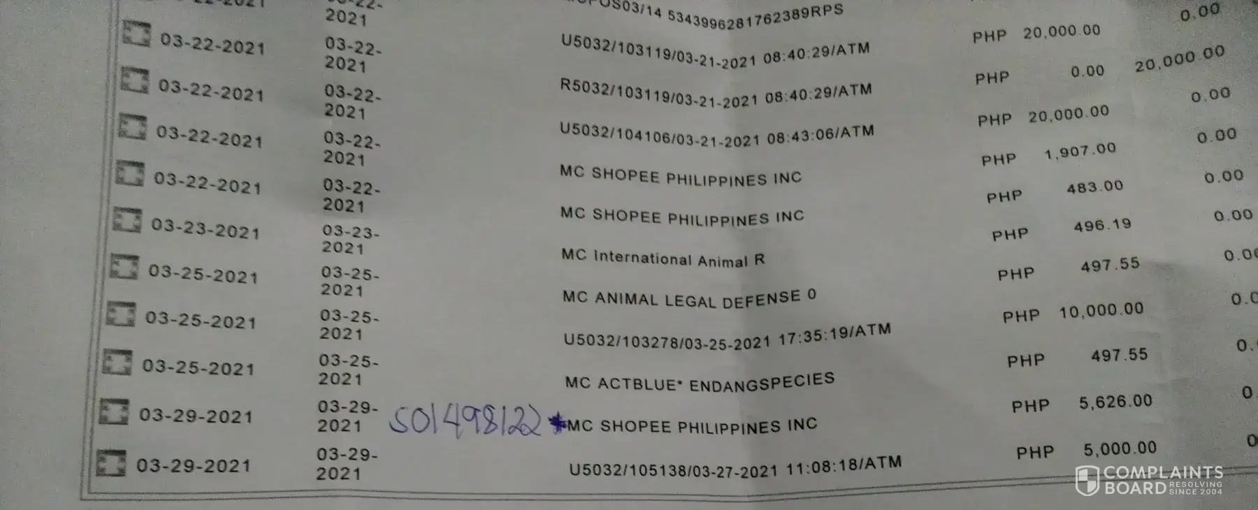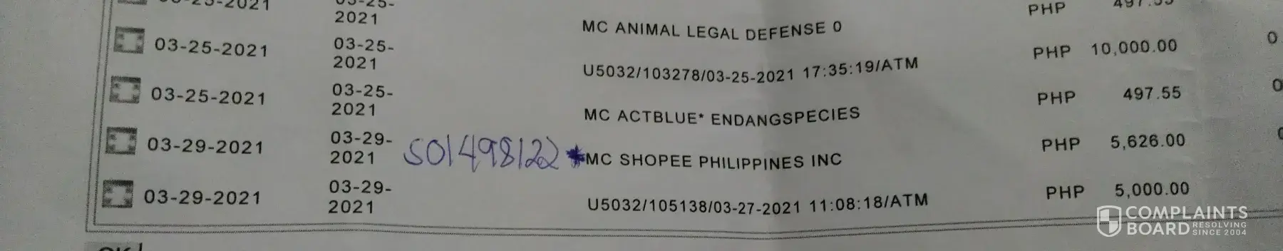 I never authorized the said transaction, and I even asked for a copy of my bank statement from RCBC Savings Bank; the said amount was shown to have been charged by Shopee Philippines, even if it didn't appear on my purchase history.
