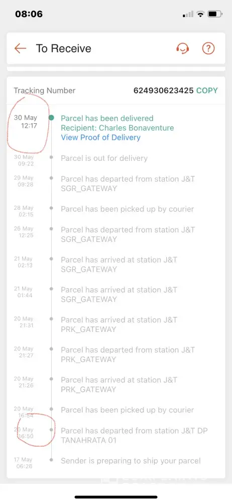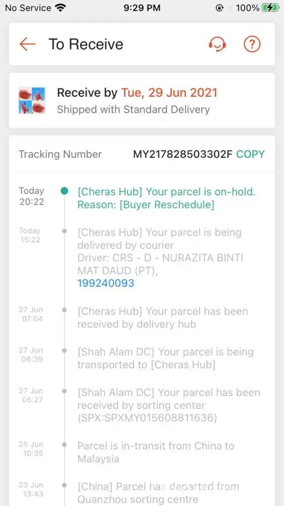 Well, I placed the order on 23rd June and Shopee courier picked it up on 24th. The delivery status not updated since then. It supposed to be delivered on 29th which is of course not happening. I tried to call support few times, but the only answer I got is " they are trying to deliver the parcel".
