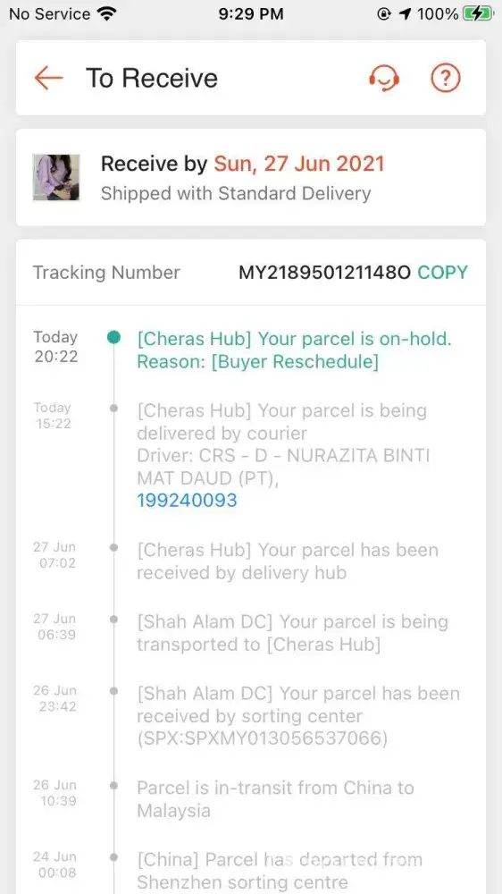 I was supposed to get my delivery on the 29/6/2021. The goods was sent from the seller place to Shah alam DC within the same day - 25/6/2021. The problem happened after the goods were sent to Sg Buloh delivery hub on 26/6/2021. It was later returned to Shah Alam DC on the 28th. There were no movements on the delivery for the past 3 days. Numerous complaints were made to Shopee customer care but there was no movement still. Im not pleased with the delivery services and I fear that my goods has gone missing.