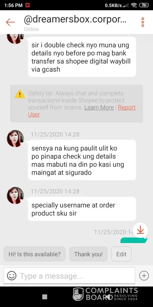 From Nov 26th and still ongoing I have asking for Shopee.ph to validate an order and account number but the escalation team that was assigned to my case never ever contacted me and give the pertinent info i needed for Gcash to reverse the payment for the grace period they had in place. because of their lapse transaction completed thus money got transferred to scammer personal account.
