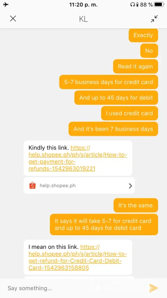 But the response I got was annoying. She accused me of reversing their policy. I'm attaching screenshots of our conversation here. I should also mention that I didn't get empathy at all and yes we weren't able to address my main concern which was the delay on my refund.