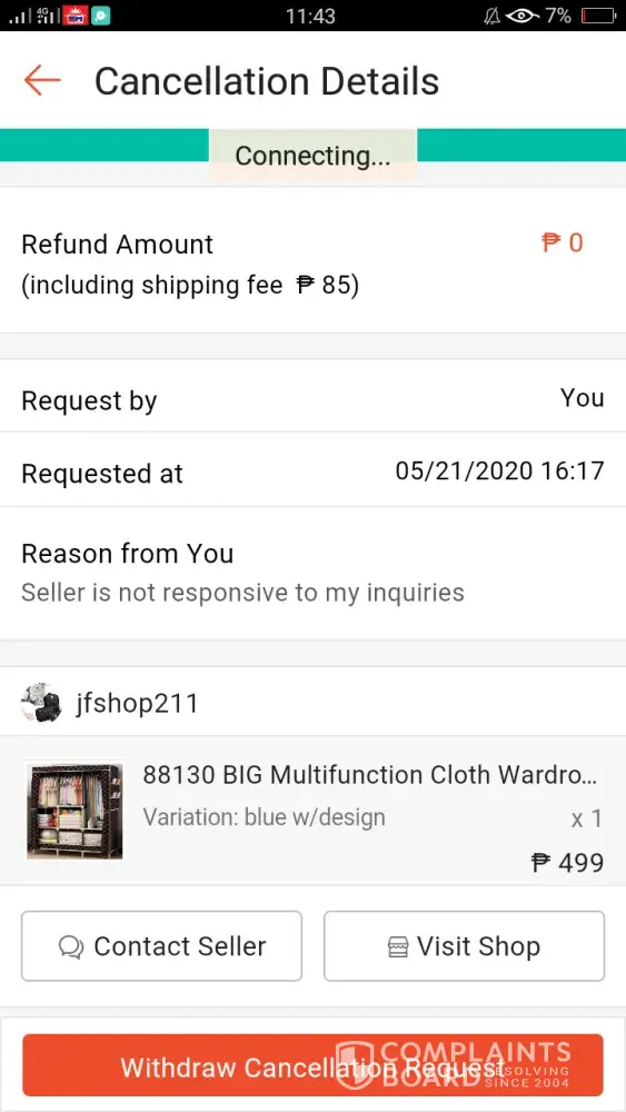 Cancelled my order last May 6th and was approved by seller the same dat. according to their help center, orders thru credit card will be refunded within 5-7 business days. Today, May 17th (7 business days after cancellation) I still haven't received any updates yet so I decided to contact their CS thru chat. The agent's name is Blessed and it was the most frustrating conversation I've ever had in my life. I pointed out what I have read from their help site (https://help.shopee.ph/ph/s/article/How-to-get-refund-for-Credit-Card-Debit-Card-1542963158805)