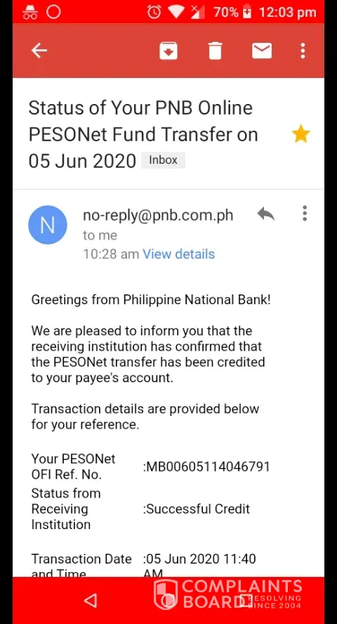 Bank transfer complaint