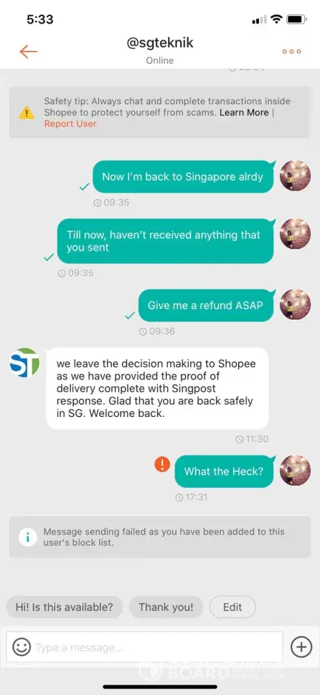 So, watch out when shopping on Shopee. I have reported the scammers to Shopee and apparently, they cannot do much about this! So, you will need to watch out yourself and look for reviews and Sellers profile.