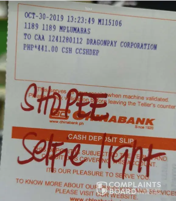 Second, he didn't bring a change. My package is Php 489 I gave him Php 1, 000 and he said he had no change and was asking me for the exact amount. I told him I also don't have a change so I have to get my package without paying or return it. So, he asked for a return. I returned my package. I already informed the seller in Shoppee too.