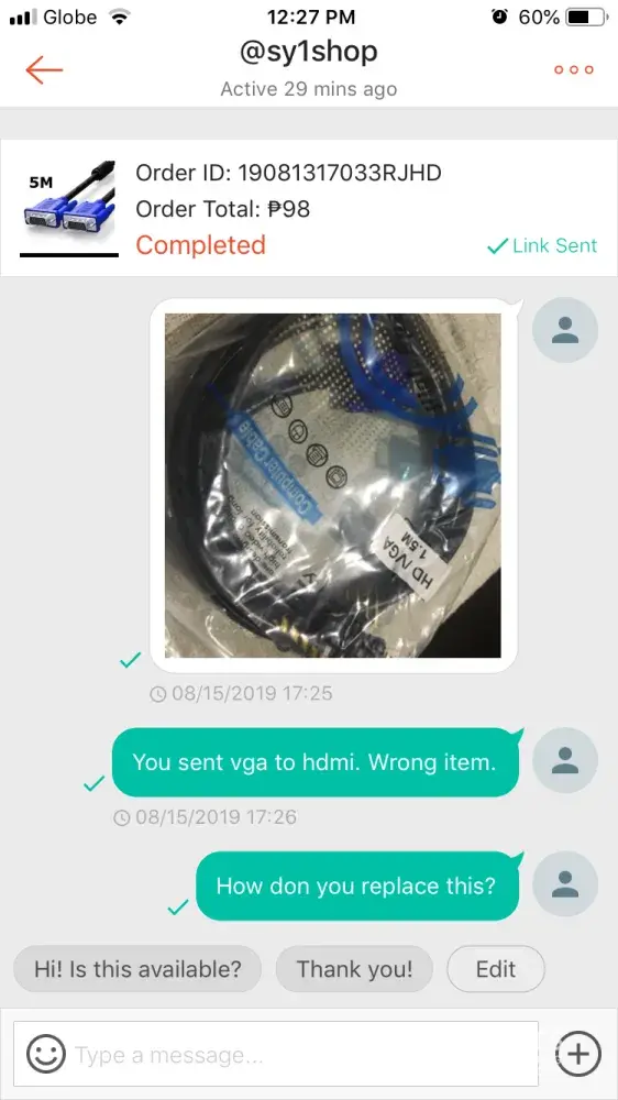 I ordered 2 VGA cables and they sent me a different cable. I pressed the return/refund button and when the shop contacted me, they couldn't give an understandable process on how to go about the return. There is no clear process on how to go about the refund/return.
