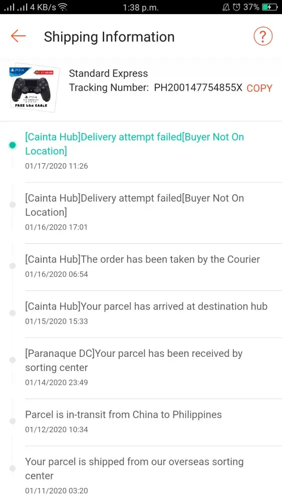 I didn't get my order today, march 13, 2020. The courier was still asking my address, i've told him where the exact place is, but still kept on asking, then he just left without stopping by the place.