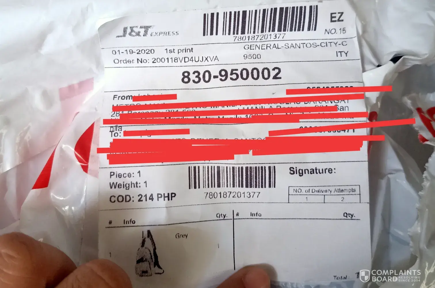I have been waiting literally for my parcel the whole day in a room facing the front gate of my house since it was scheduled to arrive on 2nd of September but J & T Express states that they couldn't deliver my parcel. I've paid delivery payment so I think it's unfair that I've to drive myself to a hub that is 11 miles away from my house. I want my delivery payment refunded as the company did not even attempt to deliver my items at all.