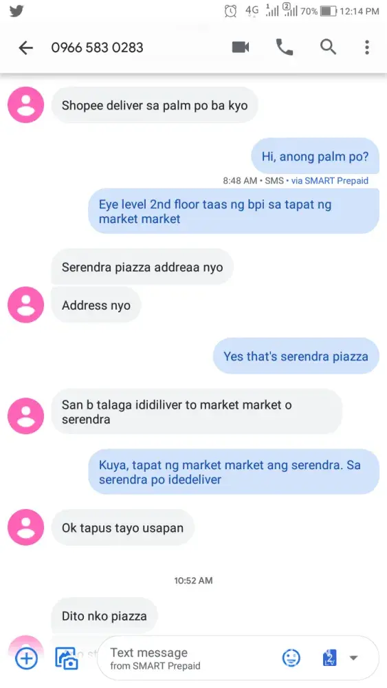 Hello idk how to explain this but a delivery guy was tasked to deliver to me a parcel, I instructed him to go inside the school and trust the guard in front to look after his belongings but he insisted that he cannot go, since I was not in the place and I only communicate with someone to pick-up the parcel, I decided to say that i'm already walikng towards where he is waiting (which is relatively far), in the end my contact and I had busy scheds (but we were able to pick it up, thank god he finally heeded my instructions after an hour of texting and him complaining and flooding texts) and I think they're going to rate me low as a buyer, idk but whatever it's such a negative experience for me as a buyer, I mean he can do his own "diskarte" like call for the person inside and make the guard watch over his motorcycle because you know, that would be faster, but he insisted on waiting, and also, he could've listened and followed my instruction to go inside the building to avoid any conflict