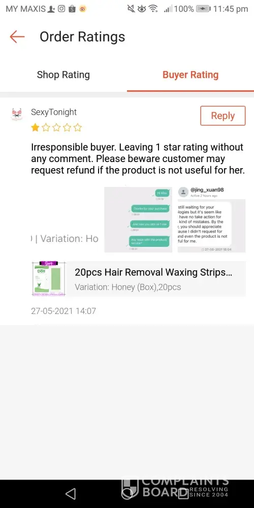 There are a ton of complaints from other people about the seller, courier, and Shopee. Therefore I'm not planning to explain it again even though I almost face it all. However, I want to write more about the Shopee Dispute Team. The dispute team has no problem-solving skill. They provide many untrue excuses and very good at shirk responsibility even though I provide quite many proofs on my issue. It's been a month and there is no resolution yet they self claim the issue has resolved. There is nothing else I could do but just provide my rating and explanation at many websites. I also plan to file a complaint at the National Consumer Complaints Centre.