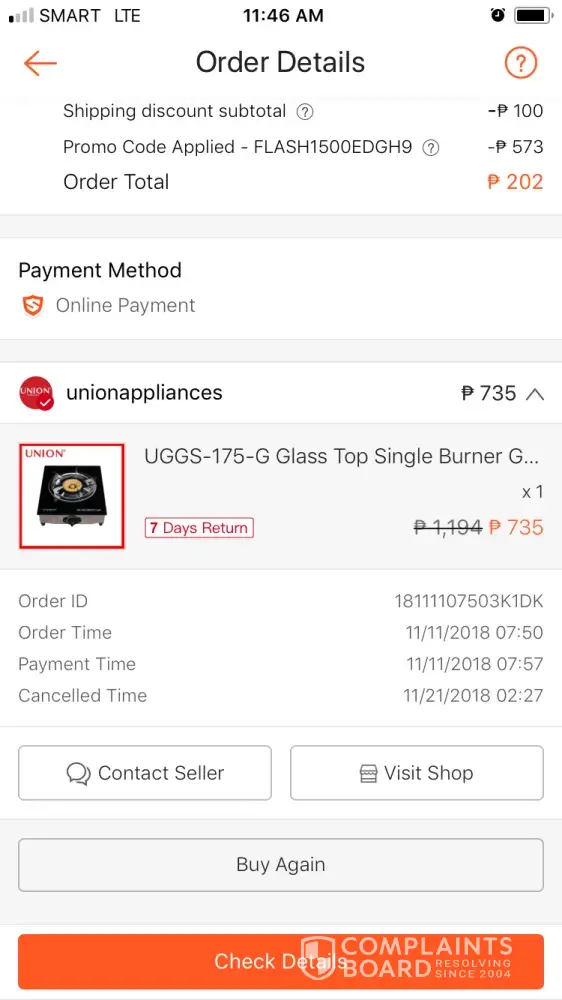 I tried ordering the same item from different sellers and all of them failed. One of them did not even bother sending the order and another one sent a wrong item. Also, sellers does not respond to my chat messages and the worse part is the support of shopee doesn't care. Don't bother using this platform. Its a waste of time. All the orders were paid using a credit card.