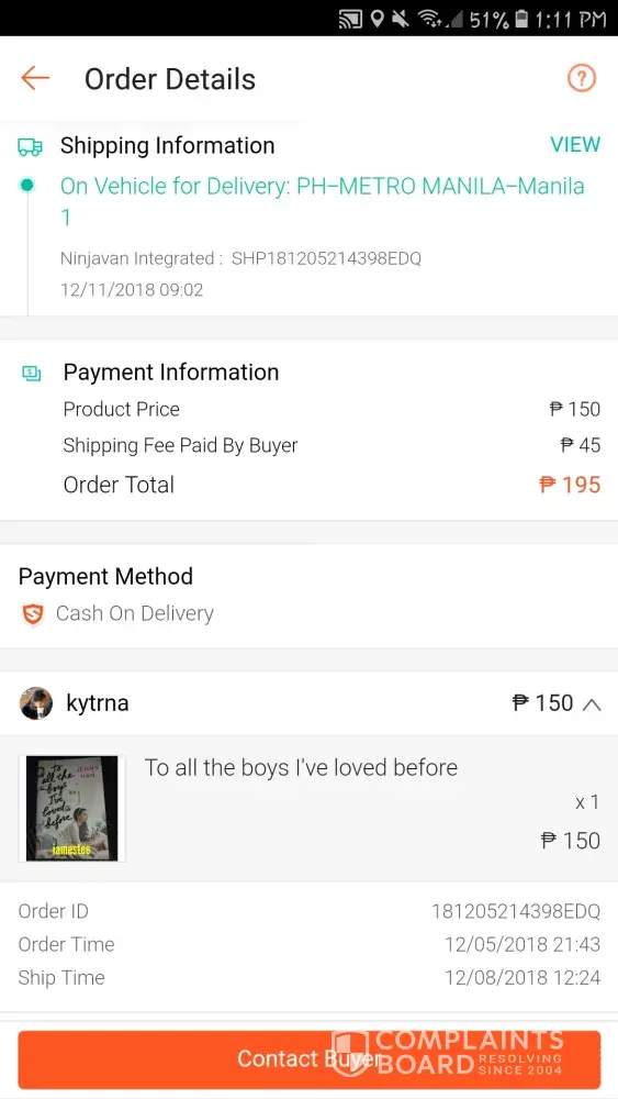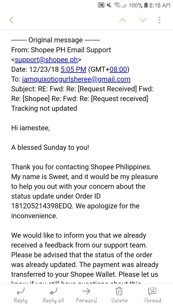 Dec 19 2018 5:03 pm. tumtwag c rider sken at ngttx. Nksilent phone ko. Pero 5:13 pm. Tumtwag ako sknya. Umwi ppa nga ko galing trbho. kc walking dstance lng nmn smen work ko. Pg uwi ko ng bhay wala na ko nadtnan na dlvery. Knulit ko ng knulit twagan ung rider hnggng pg sagot nsa oliVeros na dw sya. Sabi ko "kuya baka pwdw nmn bumalik ka kasi malapit ka pa naman dto. ang tgal ko na kasi inaantay yang dlvery na yan almost 20 weeks na" sagot nya saken hnd na dw sya mkkblik kc pbaesa nova na dw sya sab ko nmn tamang tama my daan yan dto samen pplbas ng baesa. Hnd n dw sya mkkblik. Pngbgyan ko. Tpos bngay ko pa number ko na kuya bukas alam ko my ddting pkong dlver. Bka pwdw mo na yan isabay. Sabi hhnappin nya dw mgddlver sken pra pgisahin nlng item ko. Dec 20 2018 ngaantay ako ng dlver dko na nga snslent phone ko. Kht nrrnig ng boss ko. Walang dumating na dlvery. n shoppee n ggmtin ko dpat ngyong pasko kasi dmit un. Hnggng sa nkipgchat nako sa seller. Sabi pablik na dw ng rizal ung inorder ko. Na wala akong kaalam alam na hnd ko na pala marrcieved ung item na mtgal ko ng inaantay. Panu po kya un dsddo pa nmn ako makuuha ko na ung mga inorder ko kc ngtiis akong d bmli ng bgongn dmit sa mall kc nga expected ko my mrrecieved ako galing sa shoppee pero wala na pala. thankyou. sana po mgwan ng actions