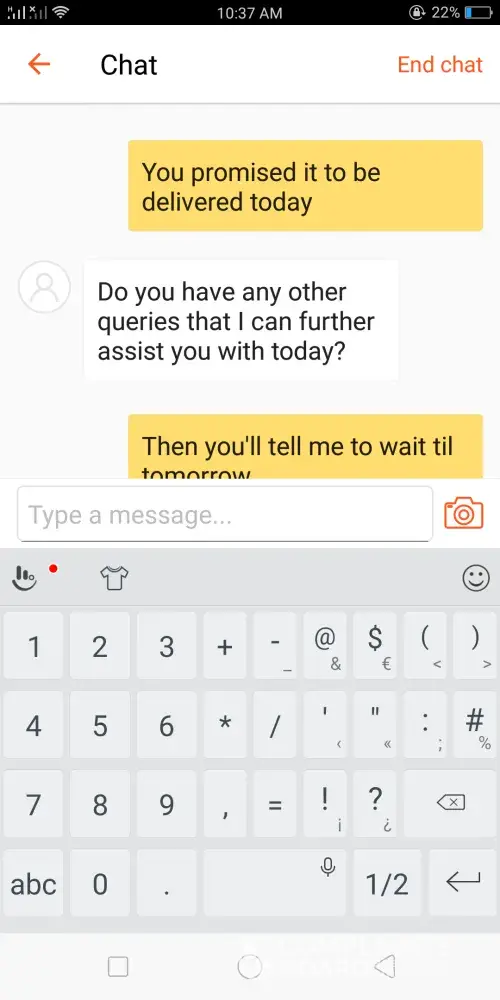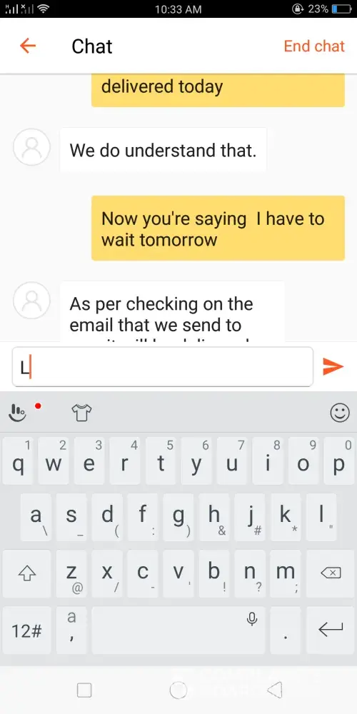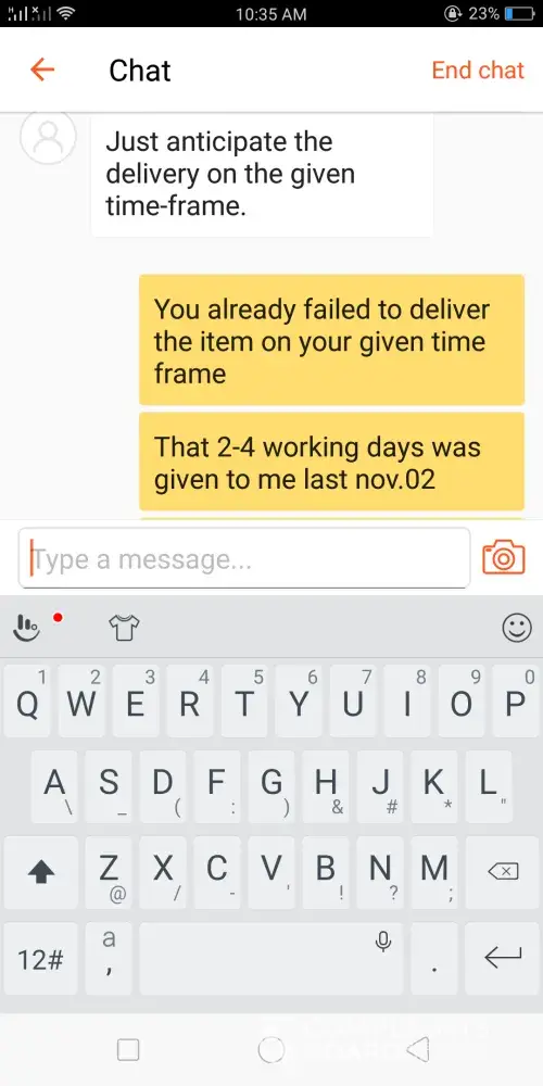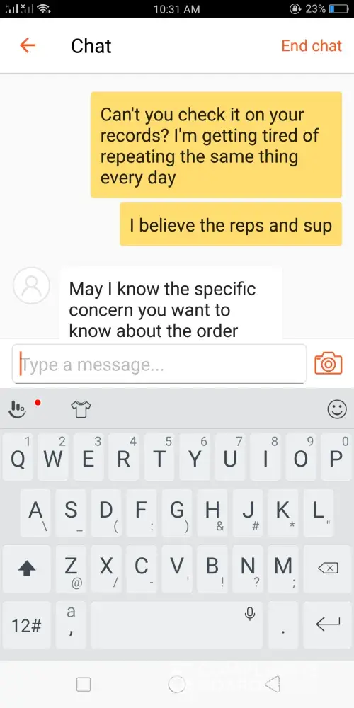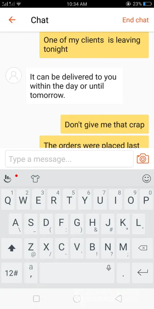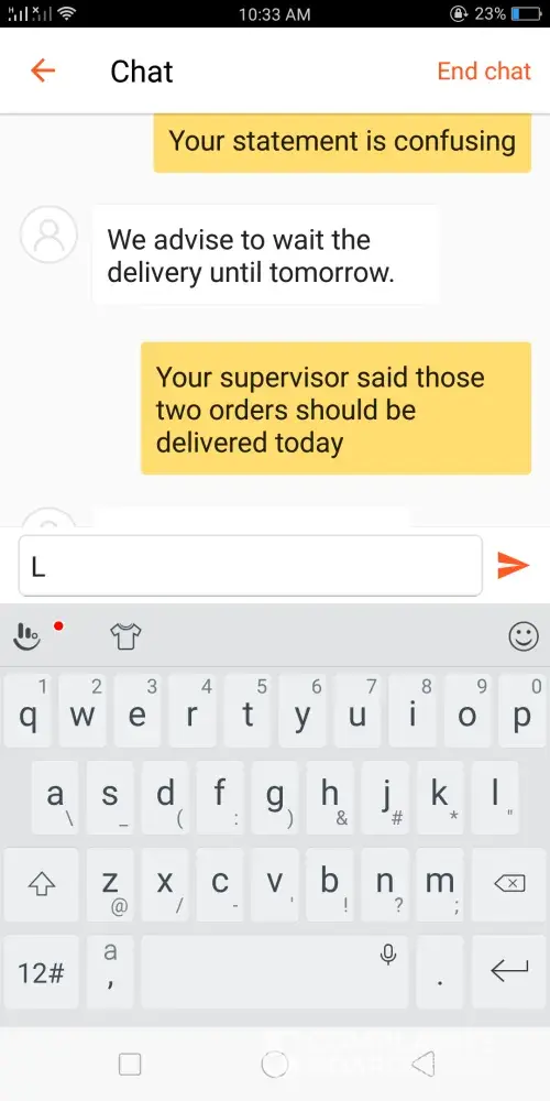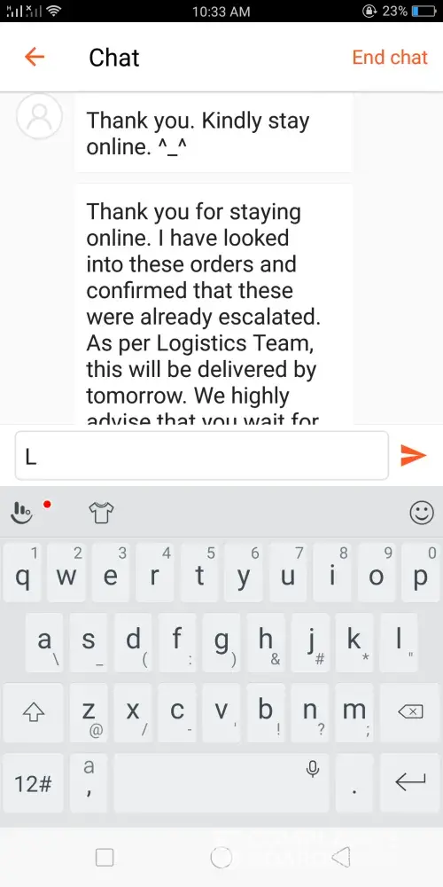 Keep on insisting for me to wait until tomorrow. I'm a reseller and my customer is waiting for her items today since she's about to leave tonight for her vacation. If the order won't be delivered today, I'll suffer big time not only with money loss but also my reputation as a seller.
