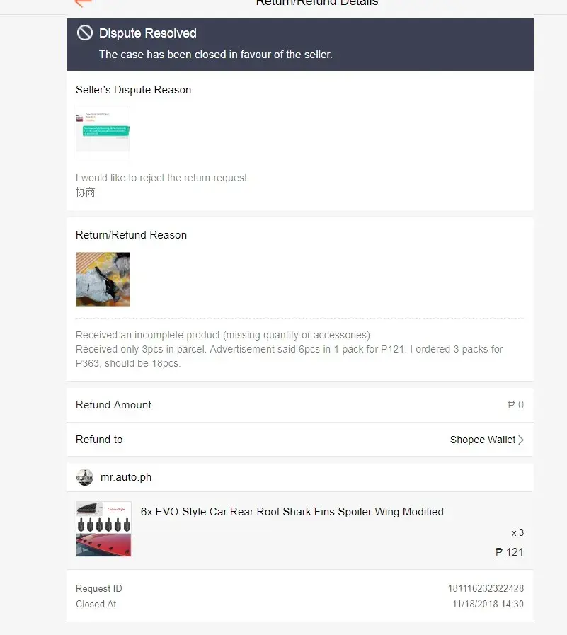 November 18 night, the case was closed in favor of the seller. Ha? How is that possible? The seller post a misleading advertisement, then after it has been delivered and paid, and the buyer found out that there's an issue and ask for a refund, then the seller will just file for dispute and ask for a half refund!?