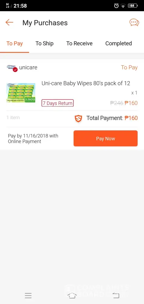 After some ten days I observed that the order of 125 toulet rolls had been tagged as 'Order Received' but according to Shopee's Guarantee: