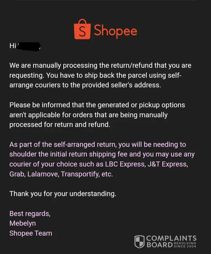 I am from the Philippines, not from US. And I am complaining for Shopee Philippines