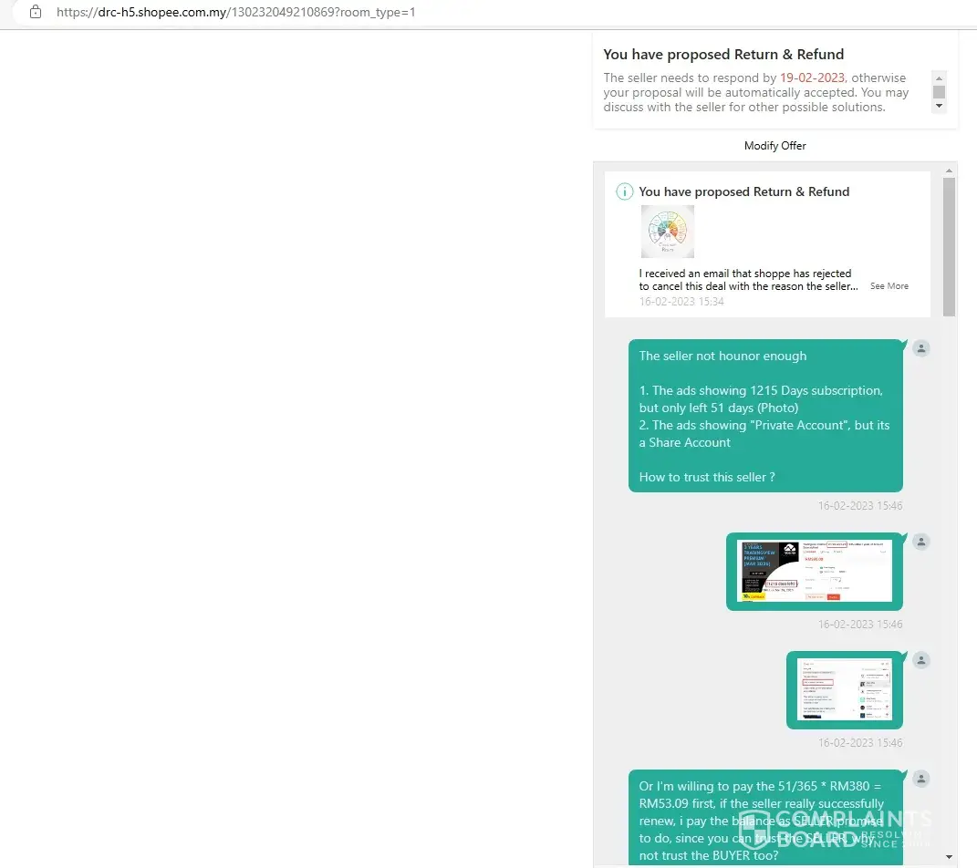 I bought a 365 days subscription service, once received the login id and password, the subscription left 51days, i have requested to cancel this deal because the service incomplete, but Shopee denied refunding and allowed the seller to renew the subscription when due after 51 days, it is ridiculous when the seller can refuse to renew, no body knows what will happen after 51 days later.