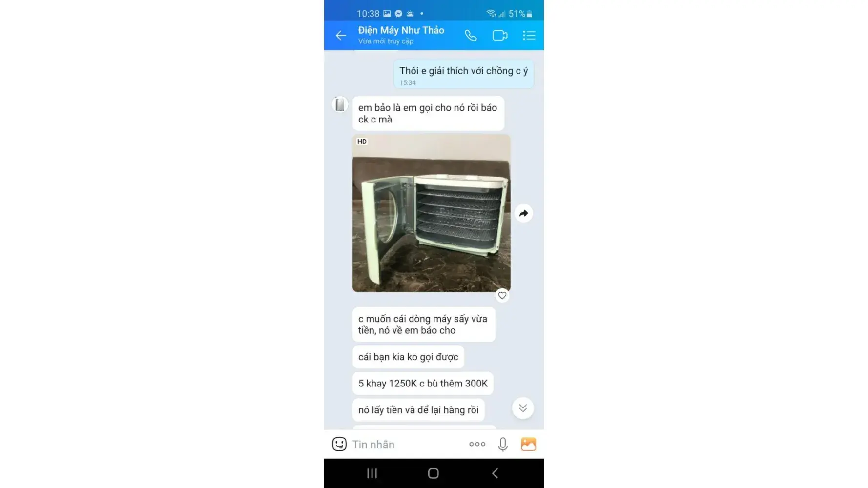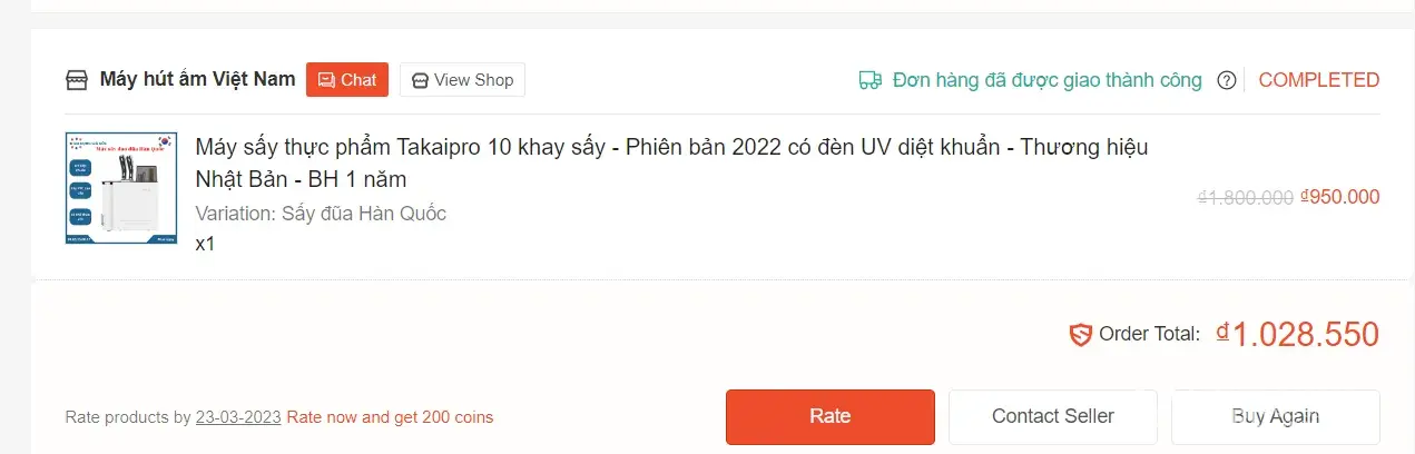 When I originally saw the advert the advert showed a picture of a dehydrator, videos of a dehydrator and a title in bold letters stating that it was a dehydrator. So when i placed my order there was only a dehydrator listed in the photos, video and title, there was no option to select a different product nor any pictures relating to the wrong product i received. Once the order was placed and I agreed to purchase I received the confirmation (See attached picture 1) Please notice on this picture that there is no option to choose between products! I was absent for delivery so my wife took the package in. On returning I noticed that the item was very small and once I opened it I realised I had been sent the wrong item. My wife is Vietnamese so she rang the shop immediately and spoke to a lady on the phone (I have phone records showing the calls took place). The woman on the phone was very nice and said that they would send out the correct item the following week and we could simply swap it with the delivery driver. That was on friday, so on monday we rang for an update and the lady said not to worry, it would be delivered this week. On wednesday we rang again and again the lady said not to worry it was on its way. On friday afternoon the item had still not arrived so we rang again, this time the woman was very rude and stated that it was our fault and that she isn't sending anything and she never said she was sending anything! (I have this information on text messages attached for you). The conversation broke down at this point, the lady said that we chose the wrong item, so I checked. The advert had been changed (see picture 2 and compare with picture 1. Picture two now shows a different picture and there is now the option of different variations), there was now an extra picture and a drop down menu for two items! Clearly you can see that after i placed the order for a dehydrator the seller accepted the money and then added variations to the advert! A classic scam! Eventually after lots of correspondence the lady agreed on a refund at our expense, I agreed this as I wanted to get this over with. So she told us to send the item back for COD. So we did this at our expense, after a week we checked with the post office and they confirmed that the item had been refused. I contacted the shop and the lady said I was lying and that her warehouse worker had taken money and given it to the driver. I explained this can not be true as I have the package in my hands. She refused this (despite being sent photos)! (The records of this are all on Shopee Chat. She then told me after lots of conversation that her warehouse worker had left the company. Then the warehouse worker was sick. Eventually things got heated and I informed them that I will call the police. At this point they blocked me on Shopee.