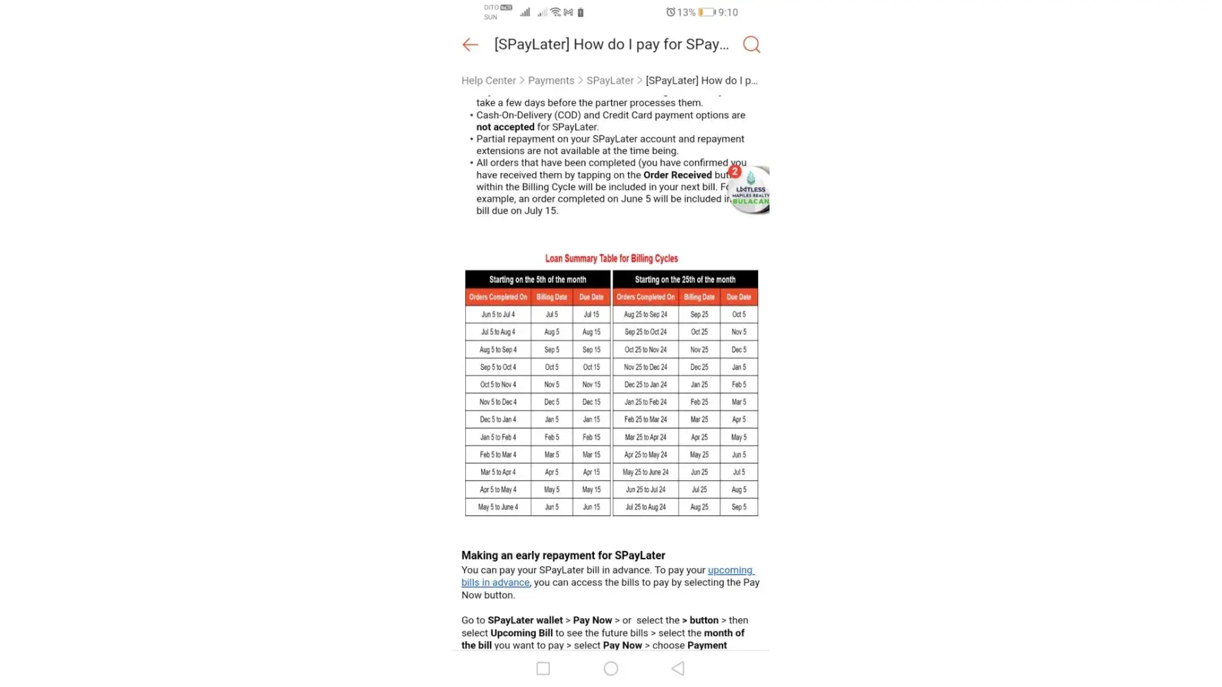 Shopee SPayLater installment due date incorrect