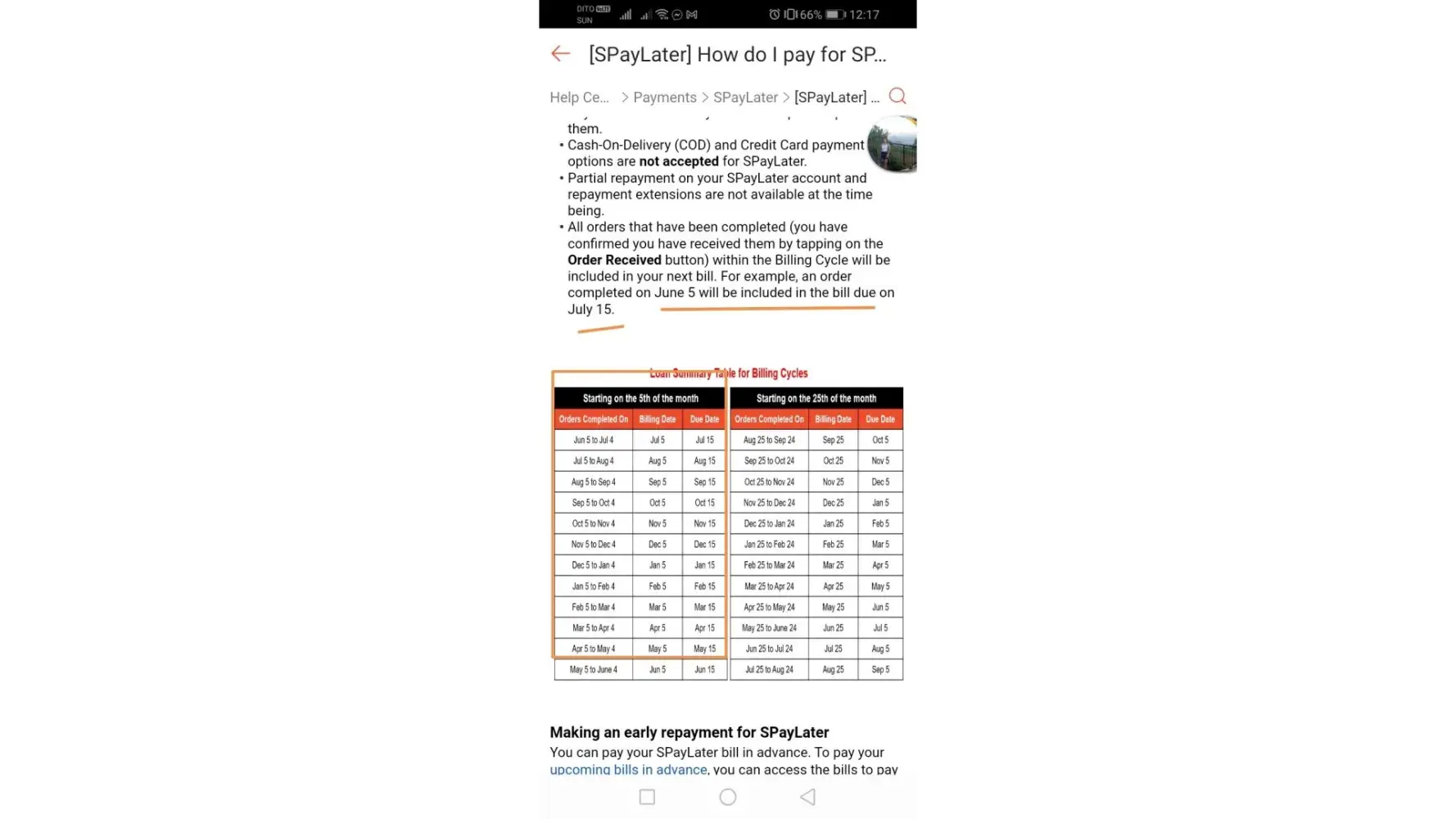 I placed two orders on March 15, and completed/received the items on March 18 and 19 respectively. My 1st Monthly installment was billed yesterday and is already overdue today, when it is less than a month when I purchased the items? It shows on their rules about billing cycle and due date that from the 5th of the month when the purchase was made, to the 4th of next month, the due date will be on every 15th. I already talked to one of their chat representatives but no resolution was taken.