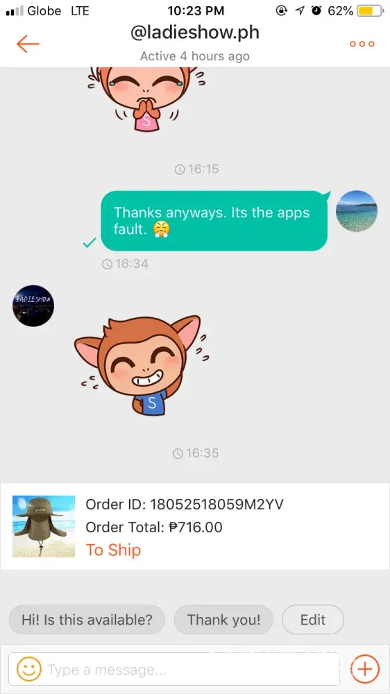 This is our entire conversation with the seller, trailblazer.ph, at shopee chat room: