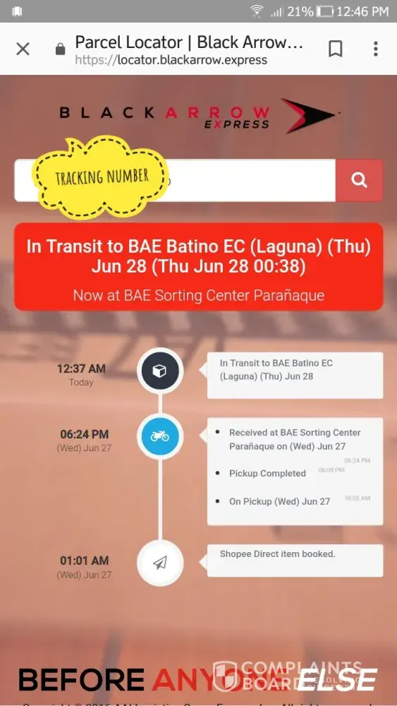I placed an order on shopee on a make up item at 12:01 am wed jun 27 but there were some problem regarding the item but was resolved by the owner and shopee. Then the item was approved by 1:01 am on the same exact day the parcel was on pick up by 10:02 am then picked up by the courier from the seller by 6:09 pm and recieved at the parañaque sorting center at 6:24 pm. Then the next day thu jun 28 12:37am it was on its way to another hub located in laguna. Then was recieved at the hub by 2:08 am the next day friday. Then today saturday the parcel was scheduled to be delivered so i stayed at our house waiting for it to come but then evening came and no delivery man came to the house. And when i checked the status it is stated the I WAS NOT AVAILABLE. meaning i wasnt present when he came. I waited all week for this and no one came and to make matters worse they update the status to CONSIGNEE NOT AVAILABLE. For years that i have been ordering online this is the first time this happened to me. But it was my first time trying this courier and i could swear this would be the last. I wont order anymore from shopee. After this gets fixed. Im so freaking mad they dont even bother to inform you through anymeans of communication. I added screenshots for evidence. 😂 never knew it would come handy.