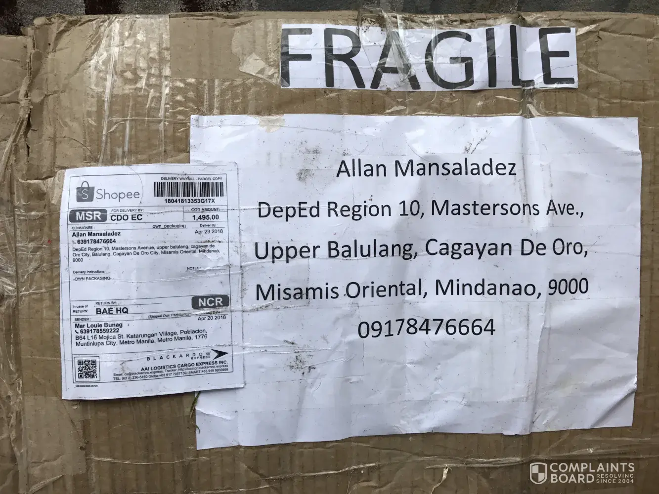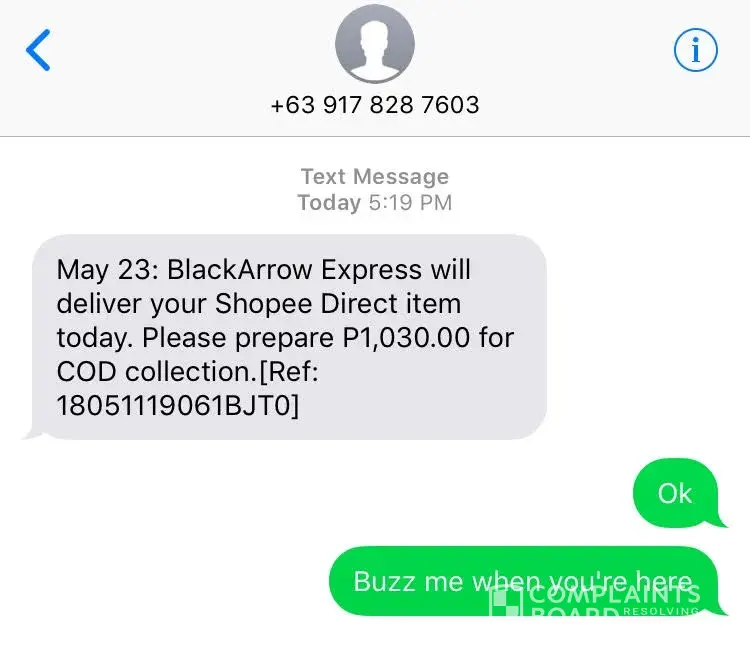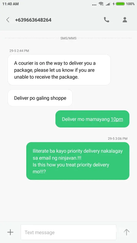 yesterday morning May 26, 2018 (Saturday), I received a text message from the above courier that they will be delivering my parcel but I immediately replied that I did put a remark on my orders before placing it that deliver "weekdays only 8am-4pm". The courier insisted that there was nothing written on the parcel about that remark. I did convinced him to deliver it on Monday instead (May 28, 2018) but that was after being rude on me thru text saying, "sa cellphone niyo may nakasulat, sa pouch diri wala" ("in your cellphone it is written, but on the pouch it is not").