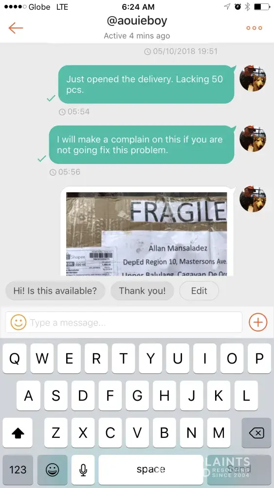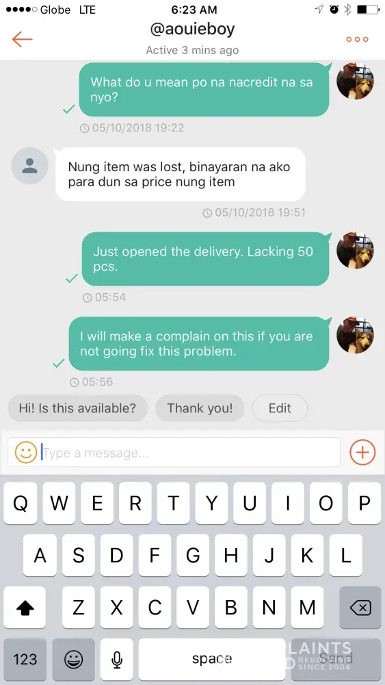 Sana po maresolve etong complaint ko na to. Kasi imbis na ganahan ako umorder dahil ng cod. Bigla nalang ako mapapaisip na bumili nlng sa baclaran or cartimar.