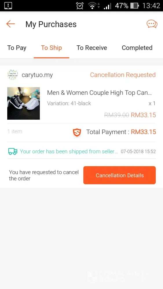 Then, I was told by the seller to cancel the order since the parcel has lost.