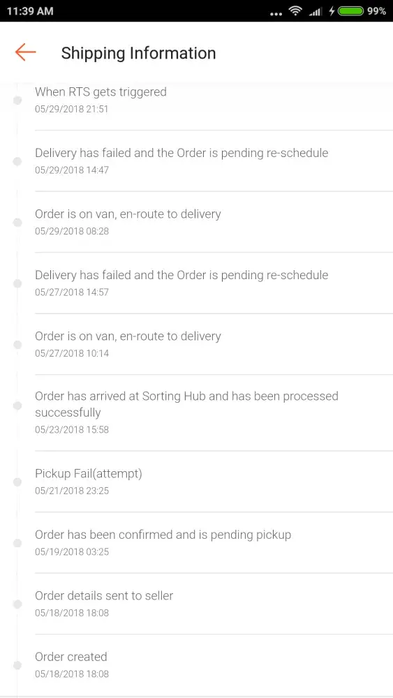 shipping / delivery service: exceeded the eta (+1 week) and logging of wrong status in the shipping information