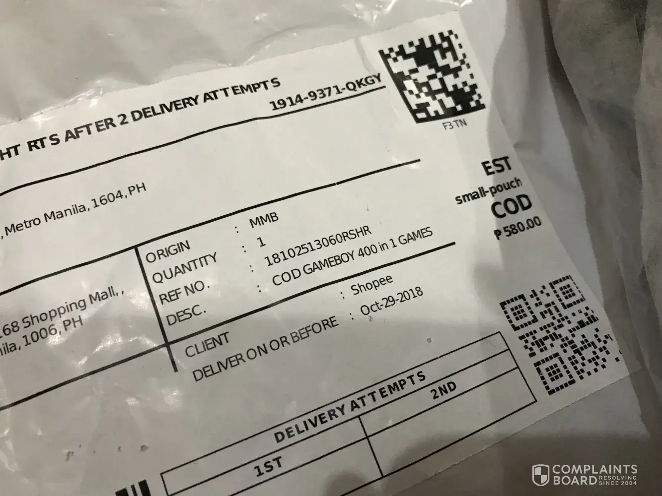 Item inside the package is not the item i ordered nor what is written in the waybill. I ordered the 400 in 1 gameboy and they sent me a bag! i also texted the delivery guy to come back and get it and bring back my payment but he never replied! very disappointing! i want my money back! or send the correct order!